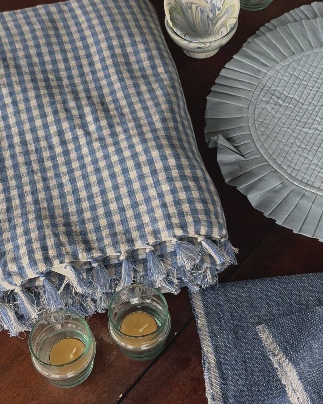 - 1 chambray gingham tablecloth