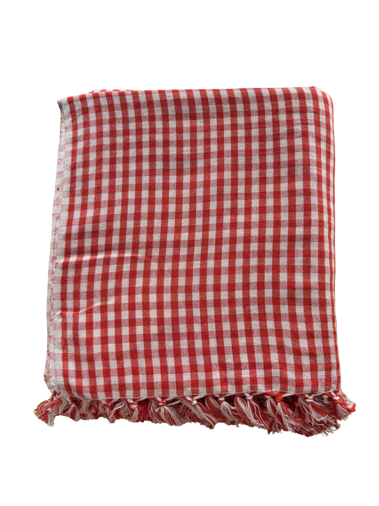 The prettiest base for all your table-topping needs! Our tablecloth is woven by women artisans in a mini gingham that adds interest, but still works nicely with other colors, & patterns. This large textile may find its home on your table, but we encourage you to use it as a bedspread, blanket, or even on a picnic. Each 100% organic cotton tablecloth comes washed and pre-shrunk, ready to be put to use!