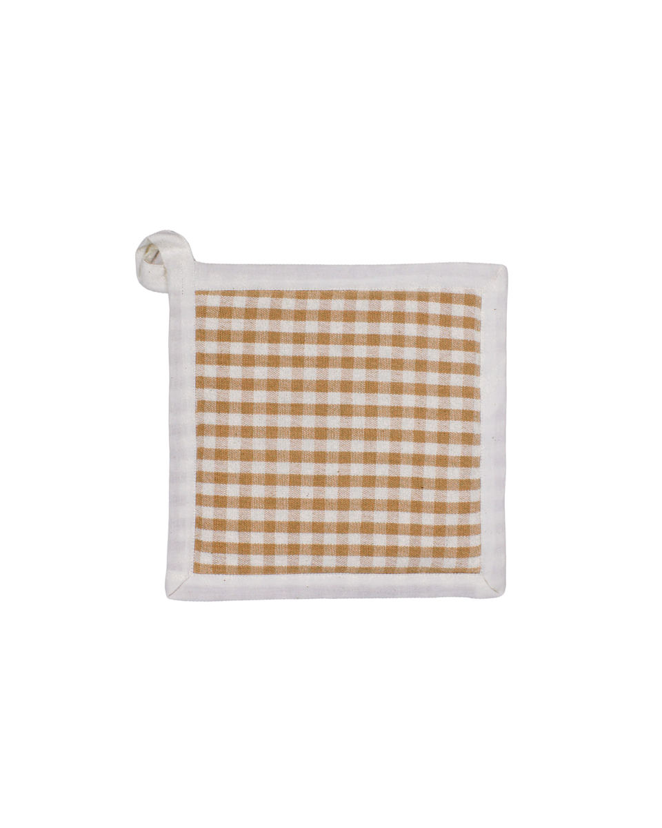 our 8x8" pot holders are an idea that originated with Kimberly’s husband, who suggested that it’s an essential textile in every kitchen & it is! Made from 3 layers: our gingham hand woven fabric, a quilting liner (to protect from the heat), and another layer of our gingham. Sewn together with a natural border and a loop to hang it with, this is sure to become your favorite kitchen companion.
